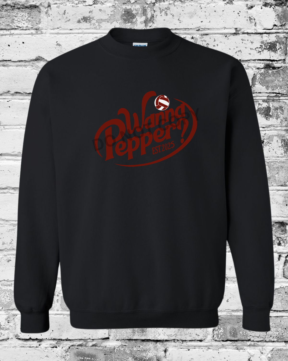 Adult Black Crewneck w/Maroon Wanna Pepper