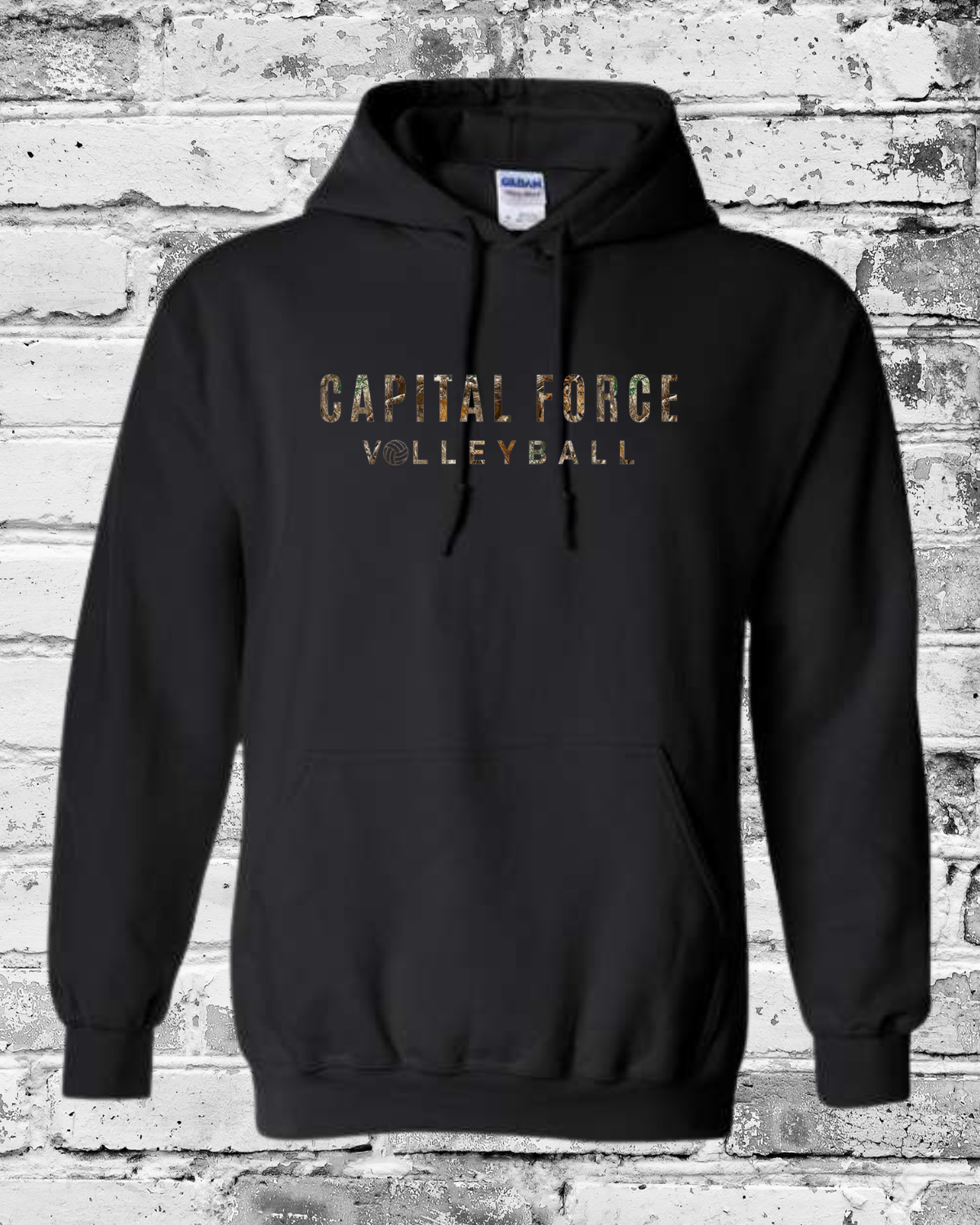 Adult Black Gildan Hoodie w/Camo Capital Force