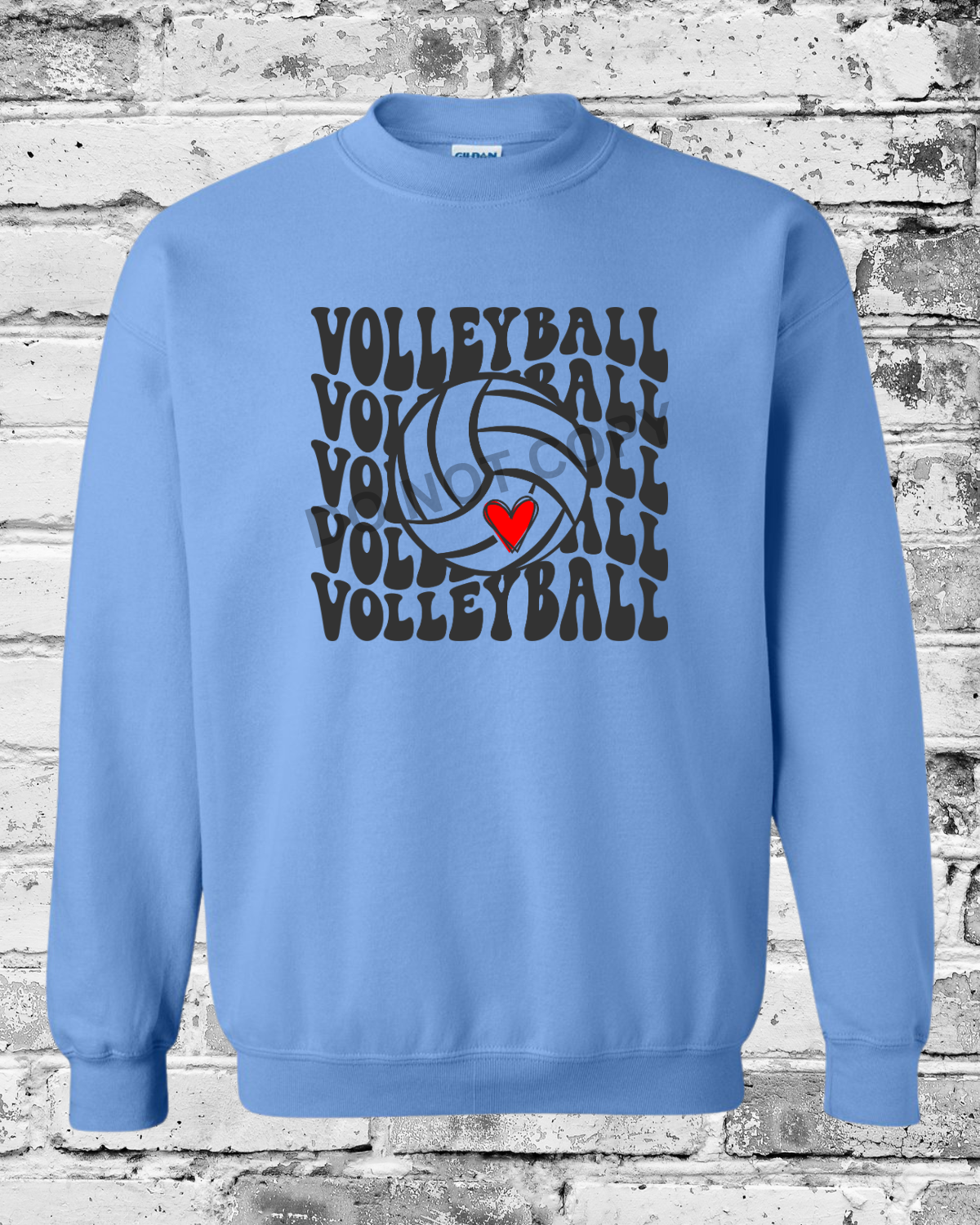 Adult Carolina Blue Crewneck w/Black Wave Volleyball