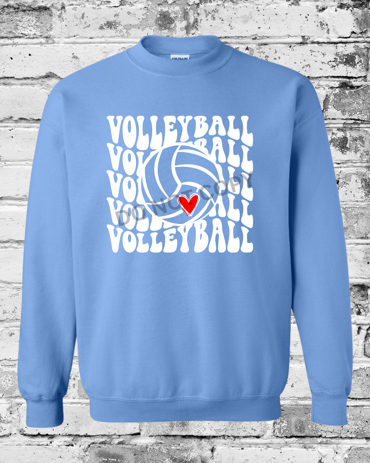Adult Carolina Blue Crewneck w/White Wave Volleyball