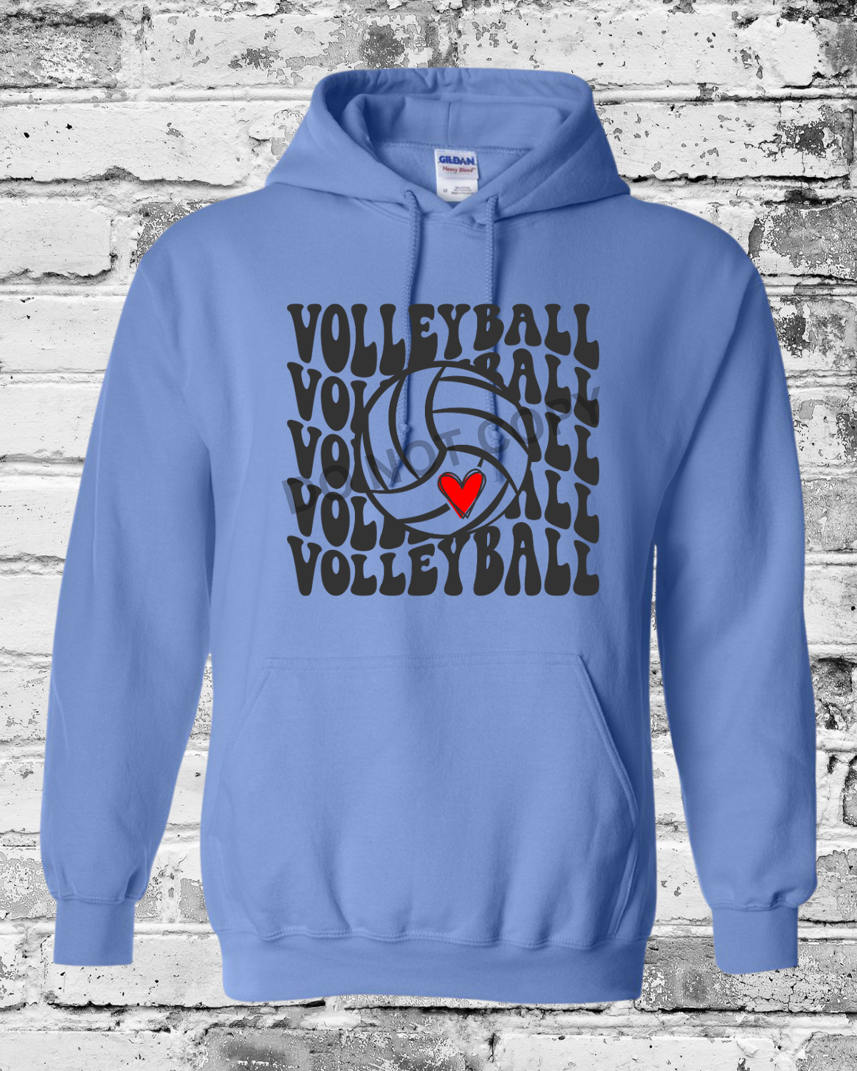 Adult Carolina Blue Hoodie w/Black Wave Volleyball