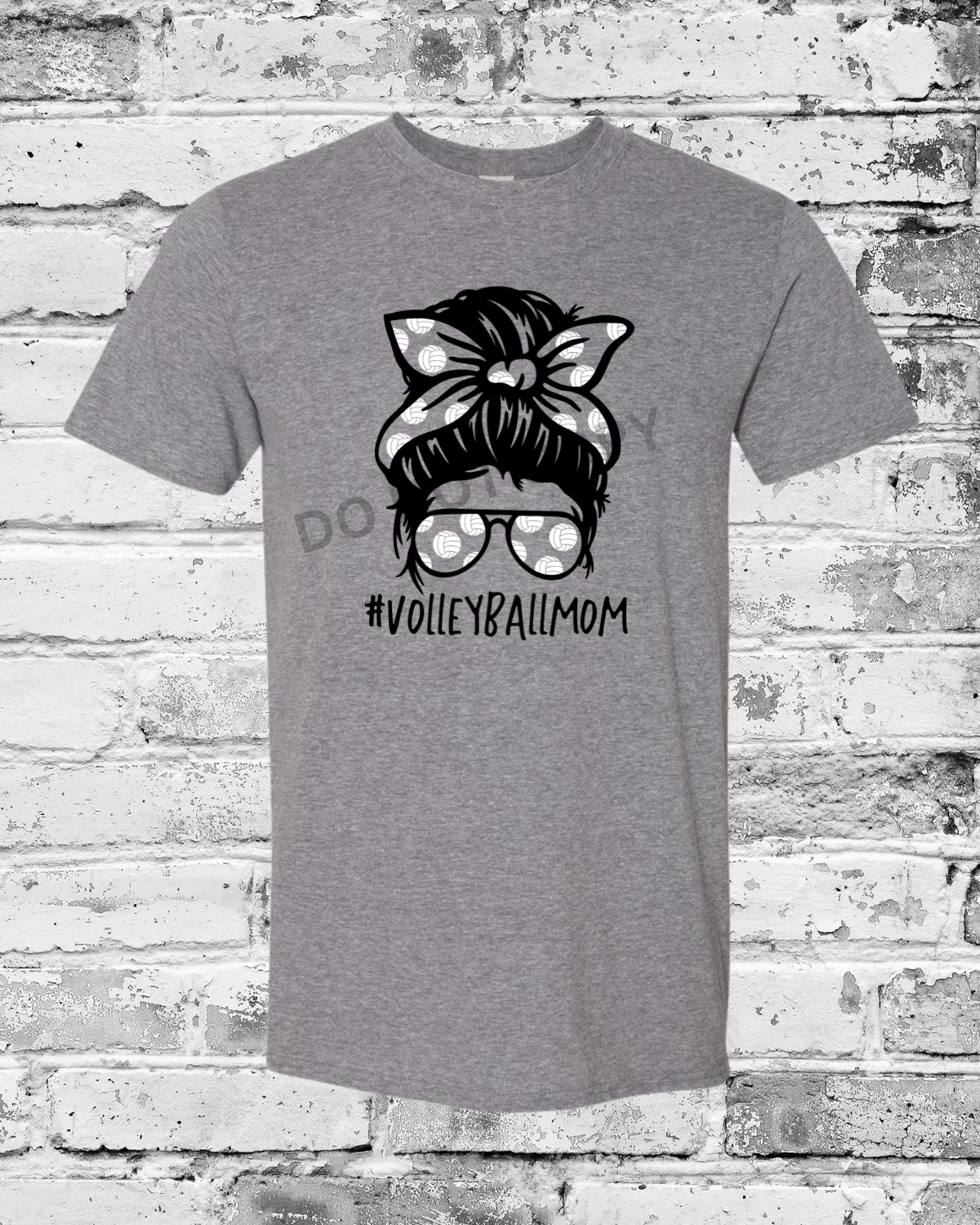 Adult Graphite Heather T-Shirt w/Messy Bun Mom