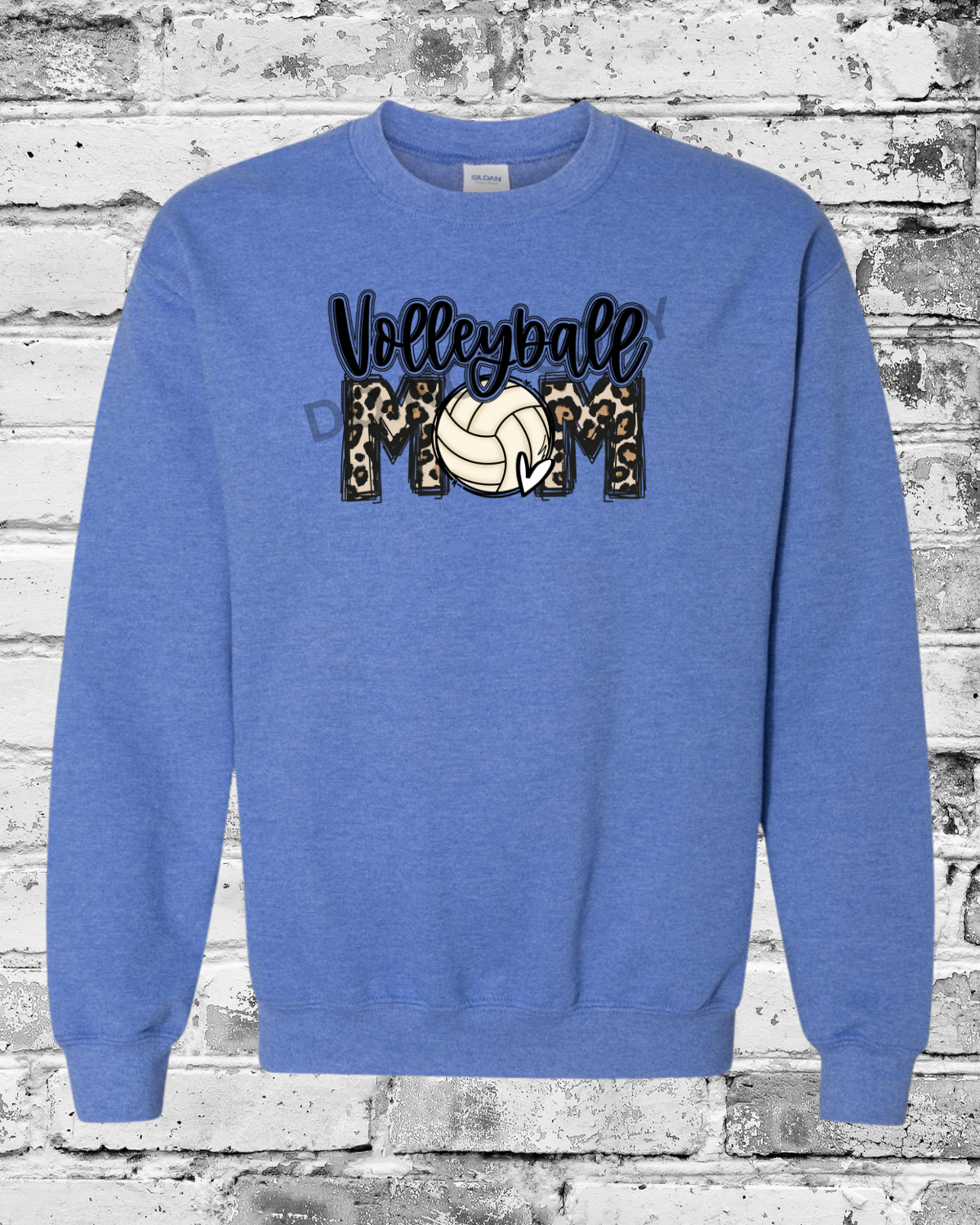 Adult Heather Deep Royal Crewneck w/Leopard Volleyball Mom