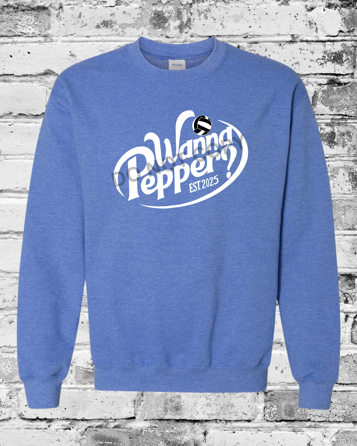 Adult Heather Deep Royal Crewneck w/White Wanna Pepper