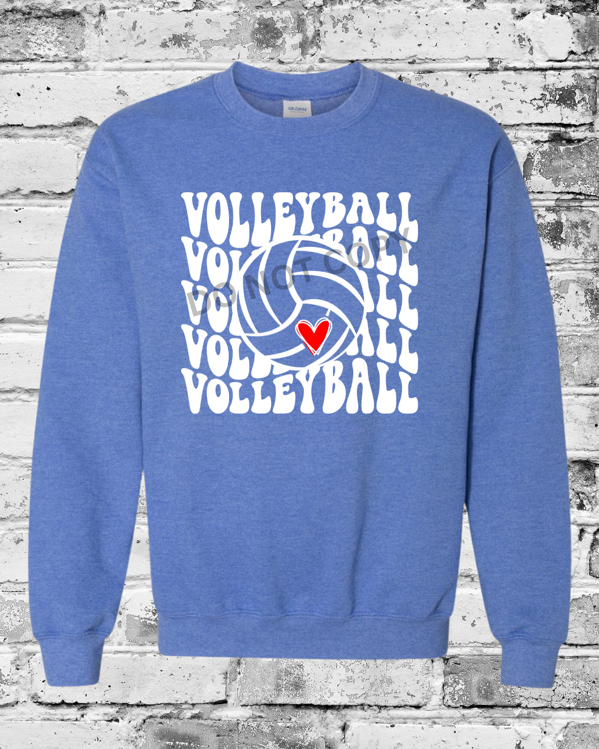 Adult Heather Deep Royal Crewneck w/White Wave Volleyball