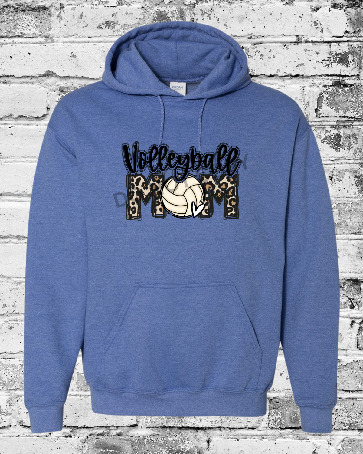 Adult Heather Deep Royal Hoodie w/Leopard Volleyball Mom