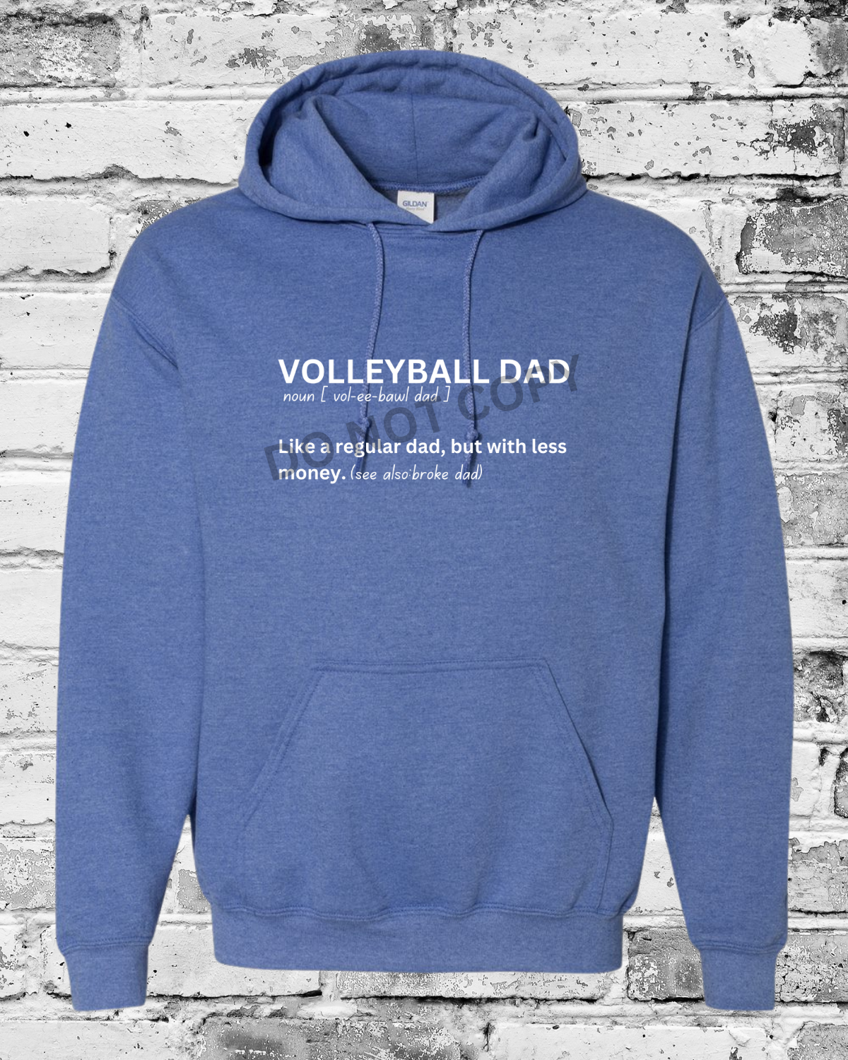 Adult Heather Deep Royal Hoodie w/White Volleyball Dad Definition