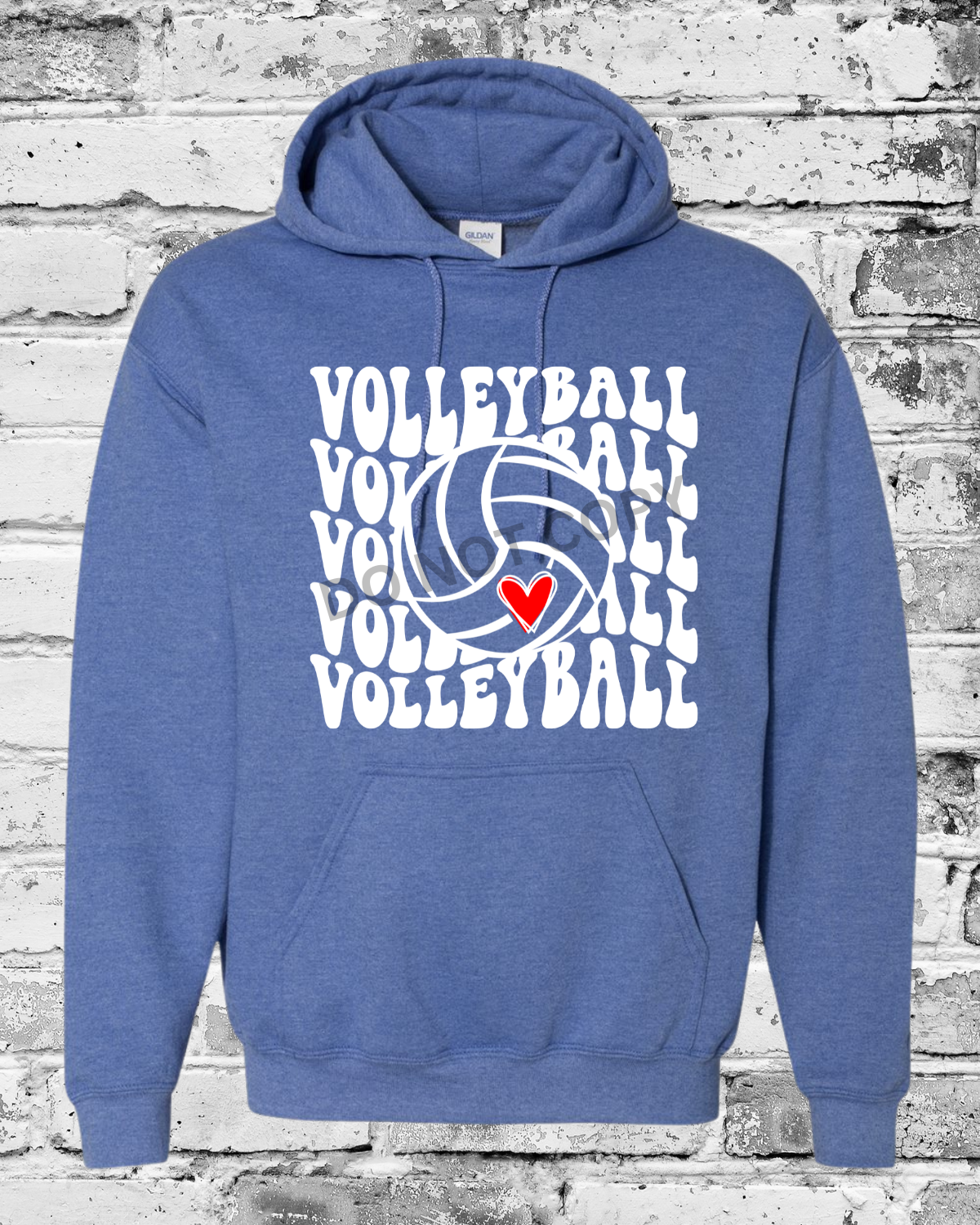 Adult Heather Deep Royal Hoodie w/White Wave Volleyball