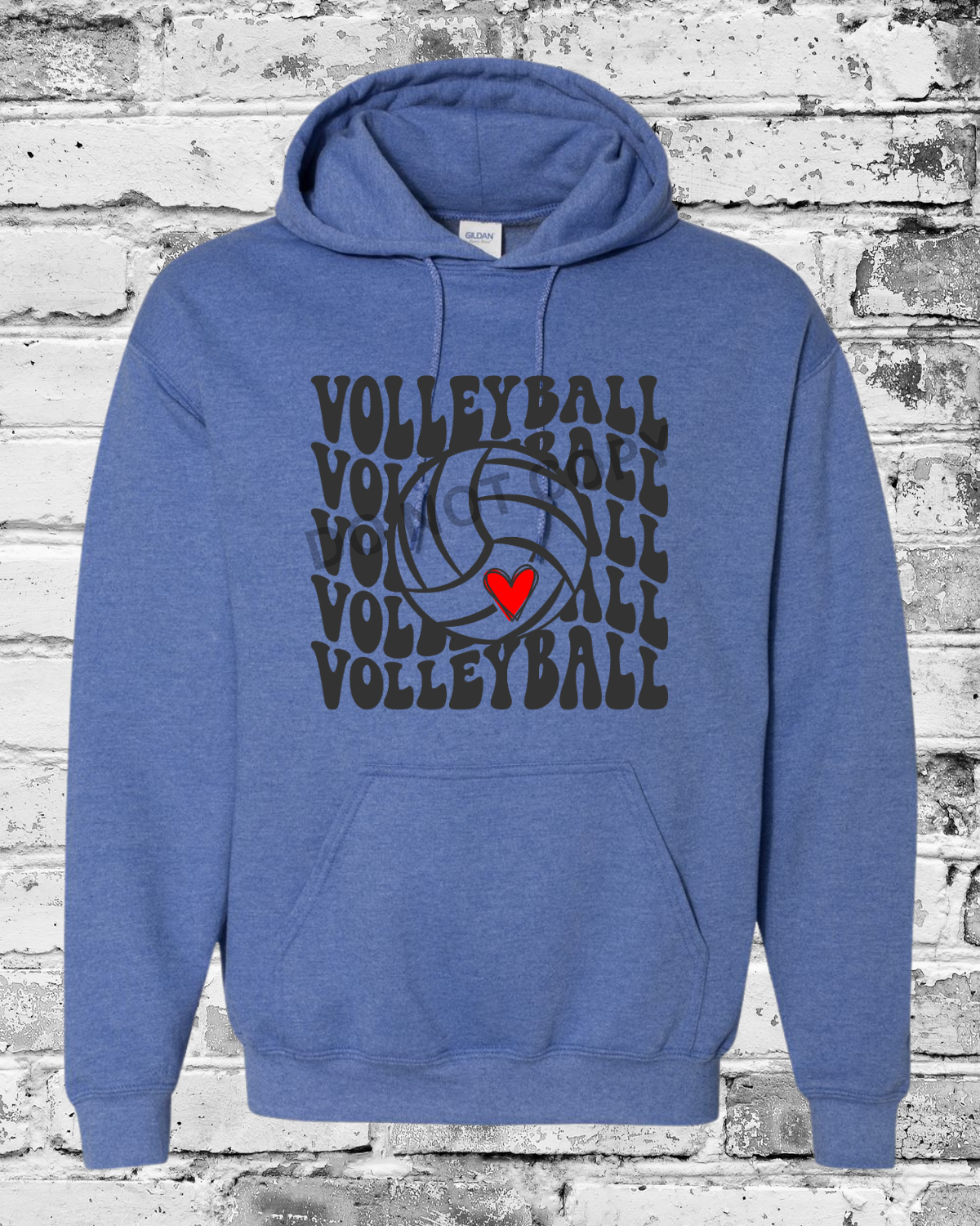 Adult Heather Deep Royal Hoodie w/Black Wave Volleyball