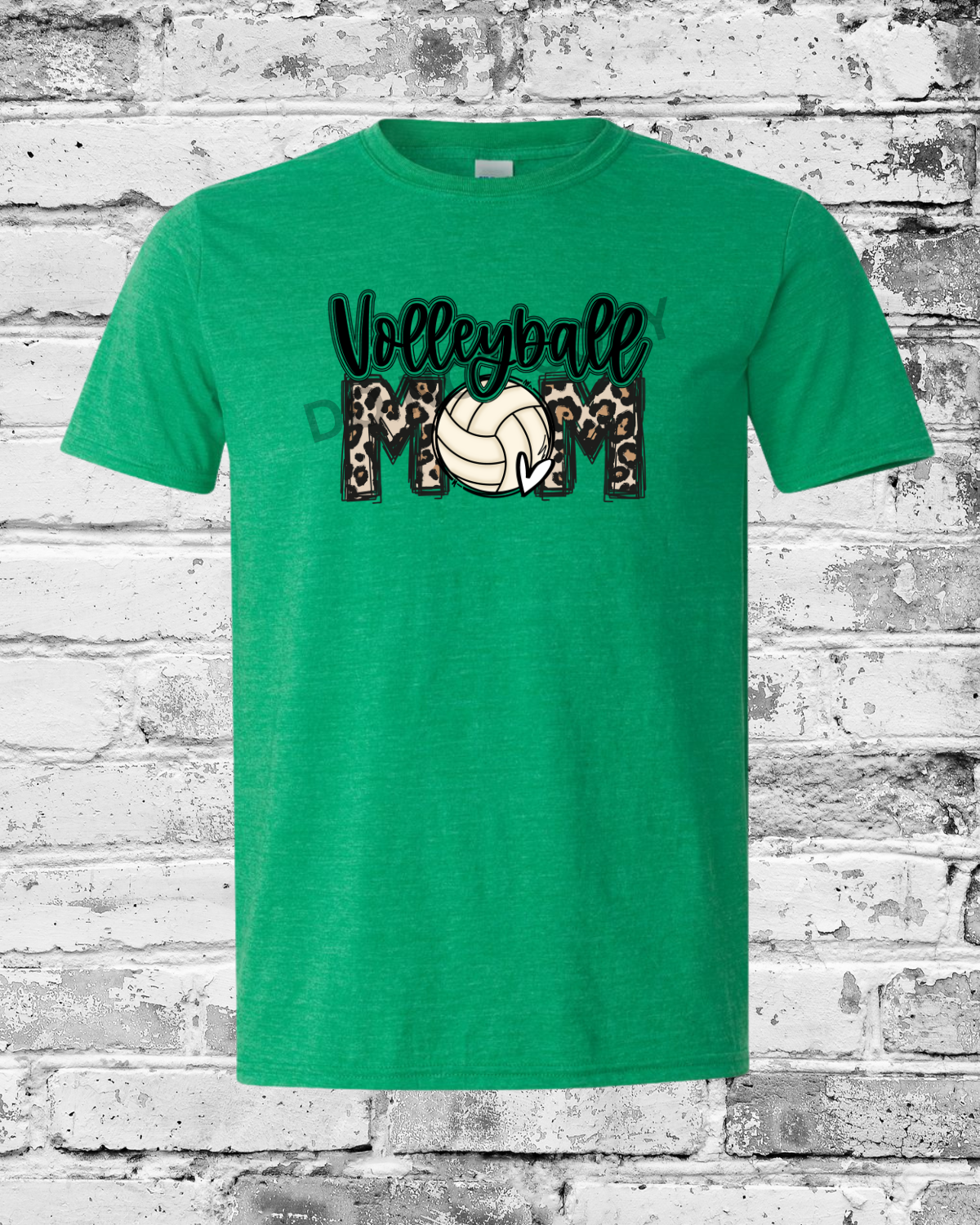Adult Heather Irish Green T-Shirt w/Leopard Volleyball Mom