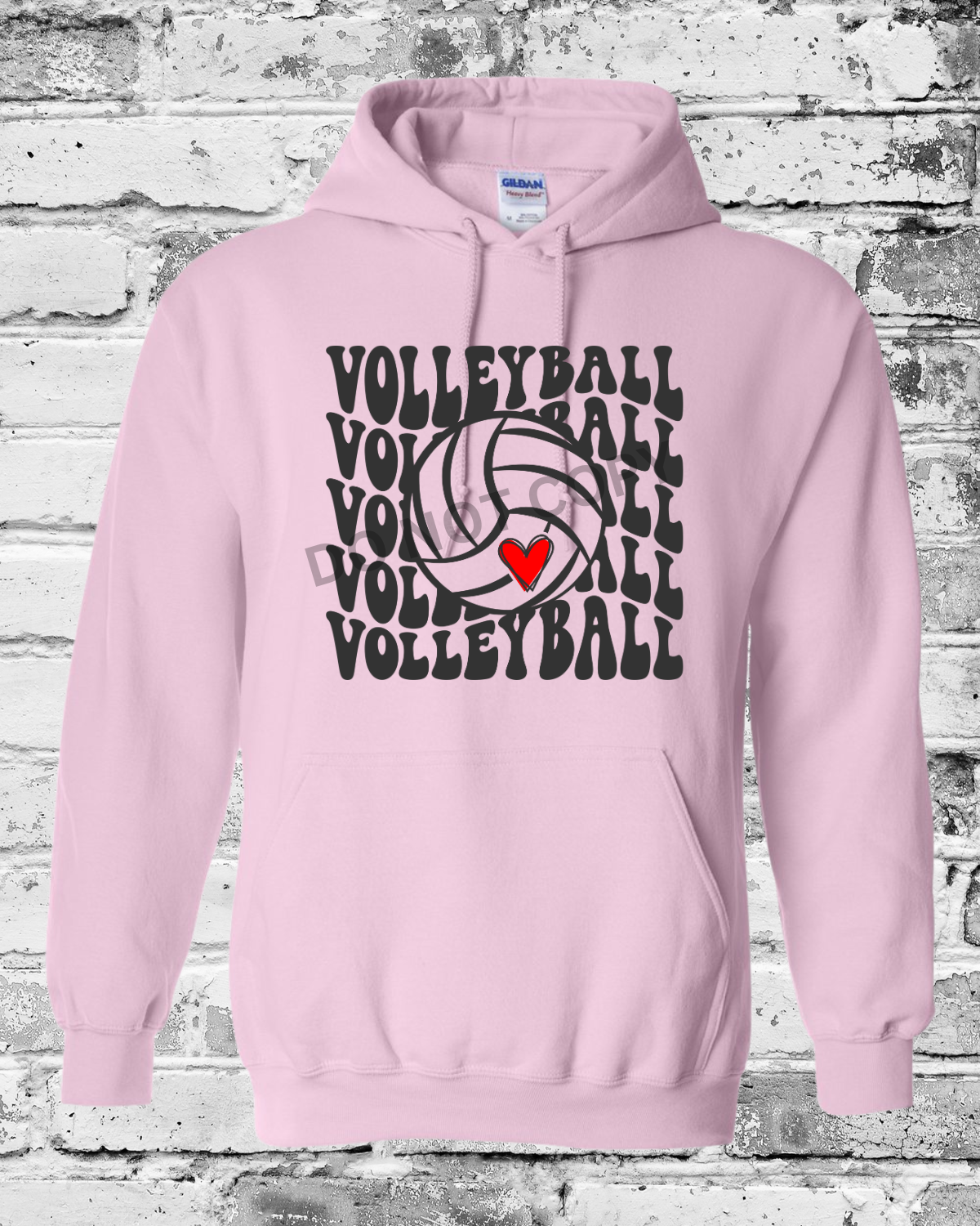Adult Light Pink Hoodie w/Black Wave Volleyball