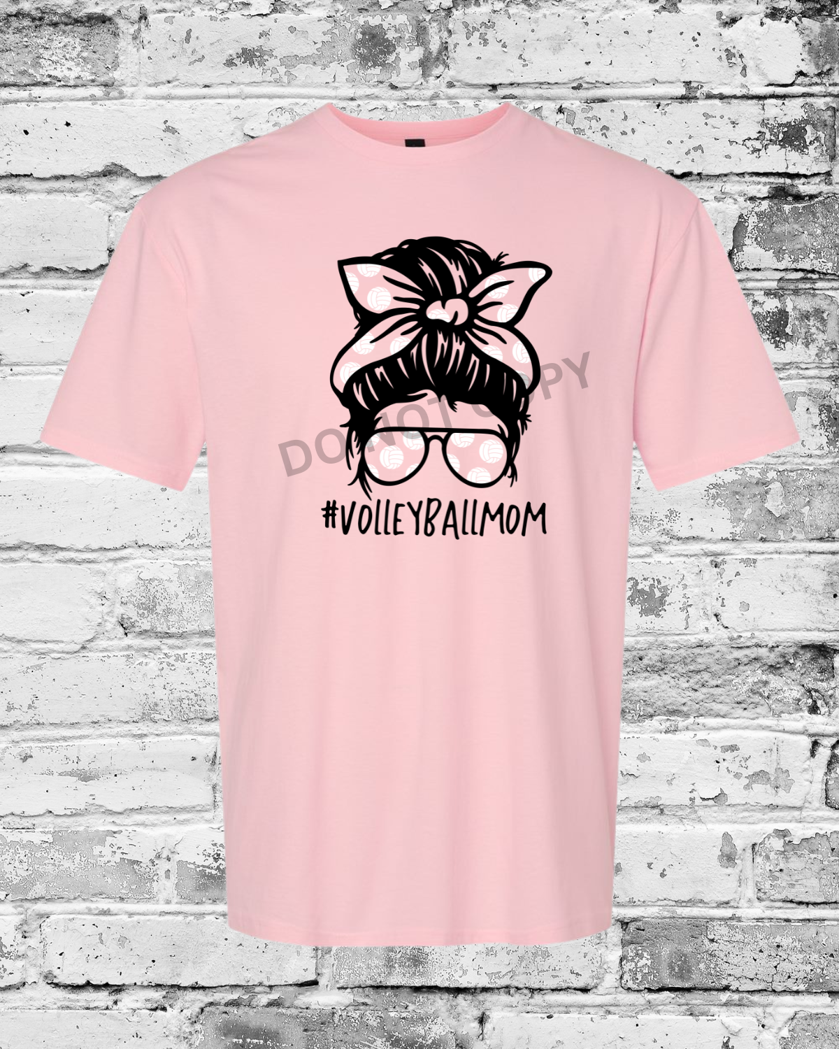 Adult Light Pink T-Shirt w/Messy Bun Mom