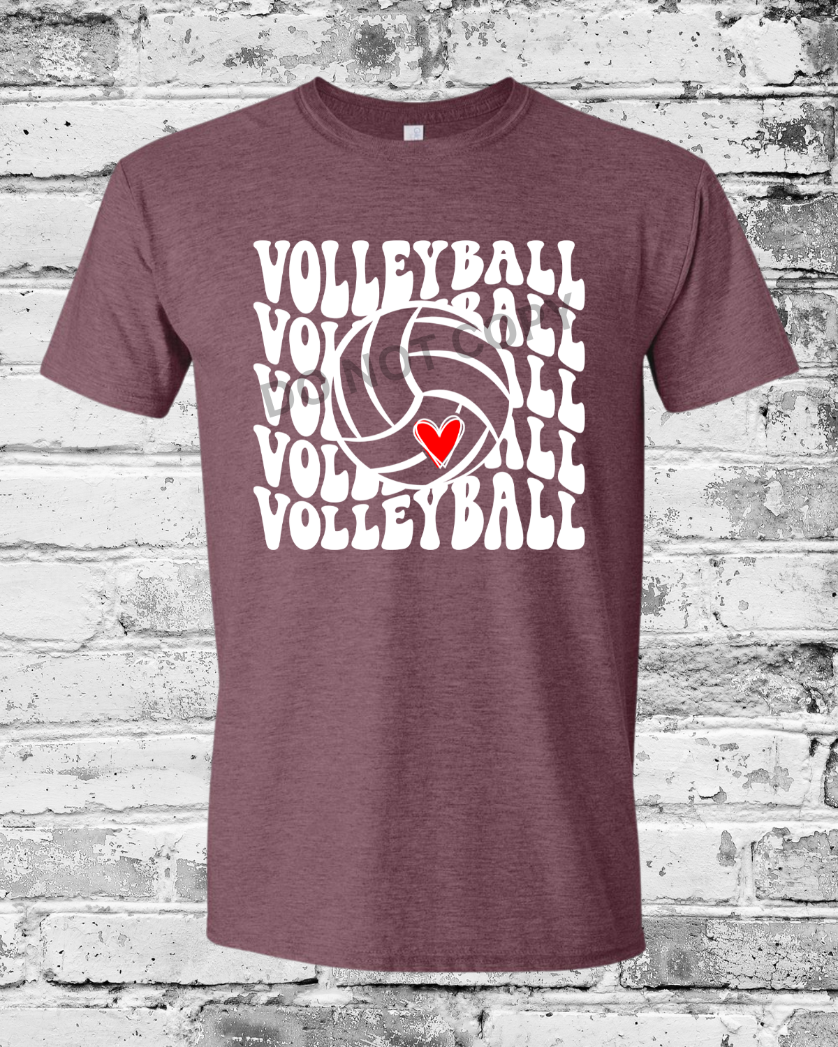 Adult Heather Maroon T-Shirt w/White Wave Volleyball