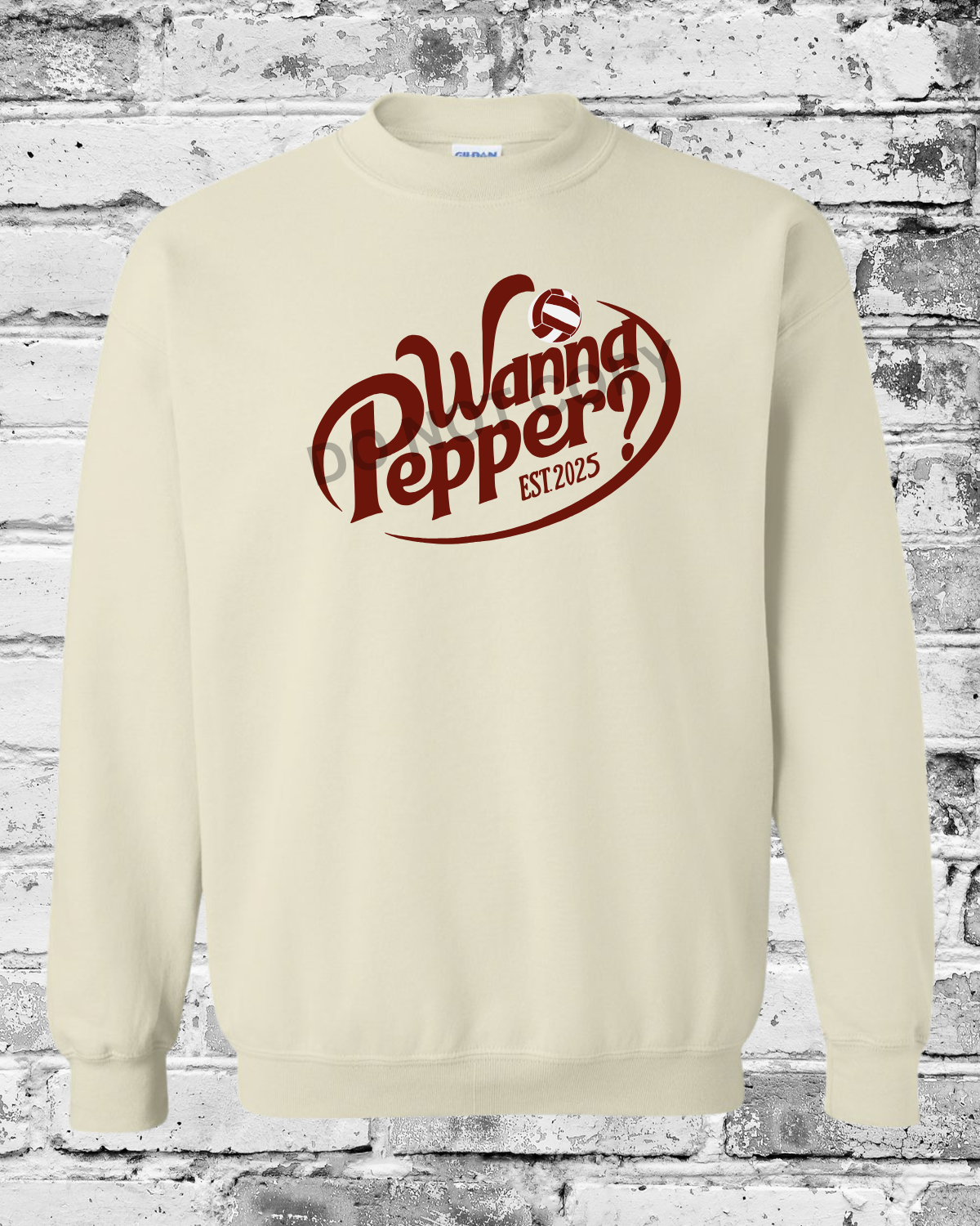 Adult Sand Crewneck w/Maroon Wanna Pepper