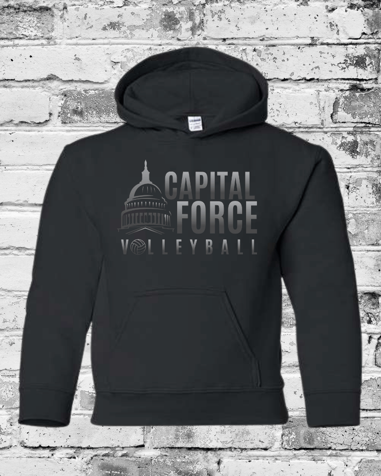 Youth Black Gildan Hoodie w/Black Ombre Logo