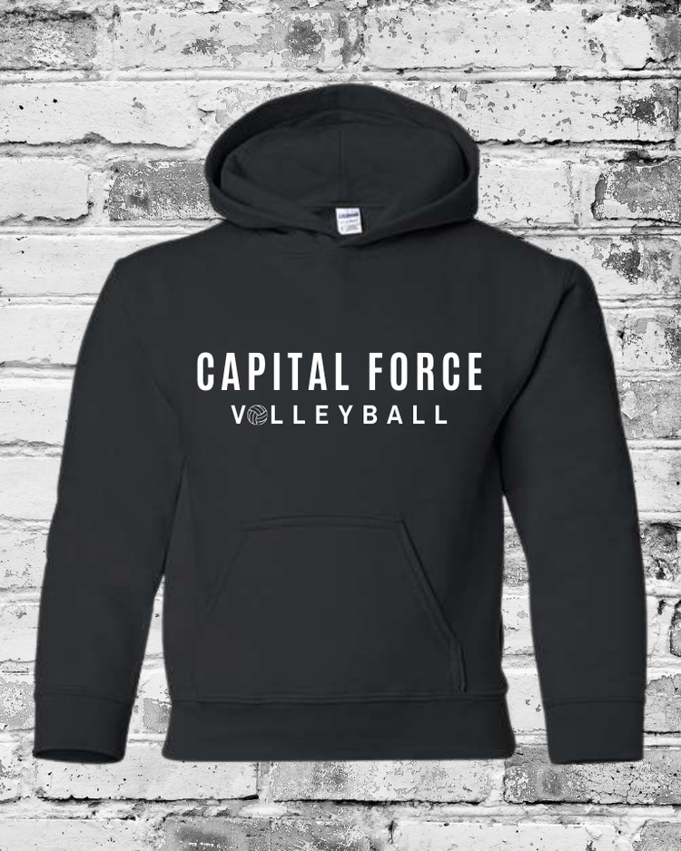 Youth Black Gildan Hoodie w/White Capital Force