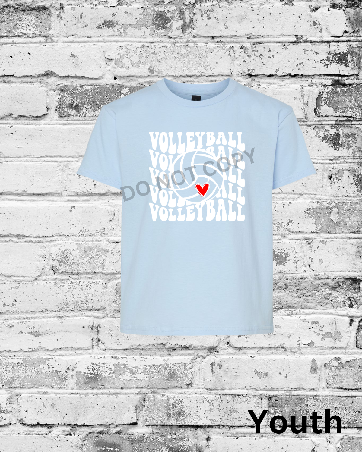 Youth Light Blue T-Shirt w/White Wave Volleyball