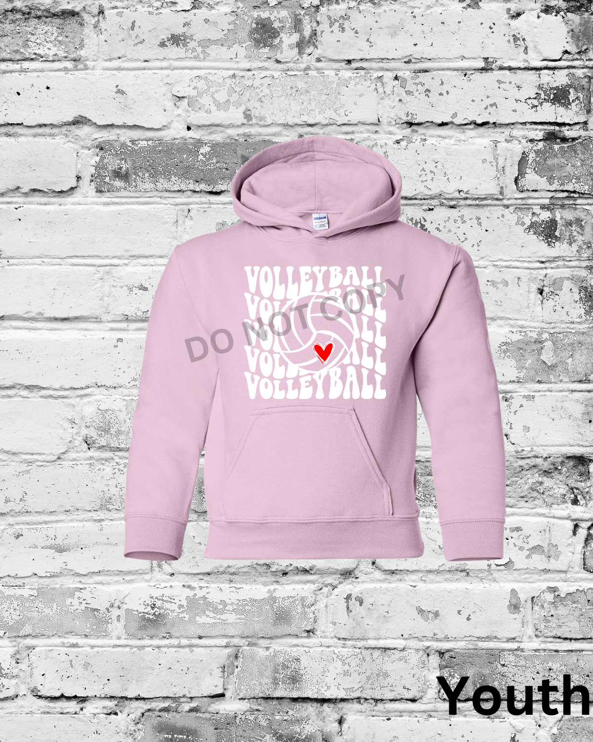 Youth Light Pink Hoodie w/White Wave Volleyball