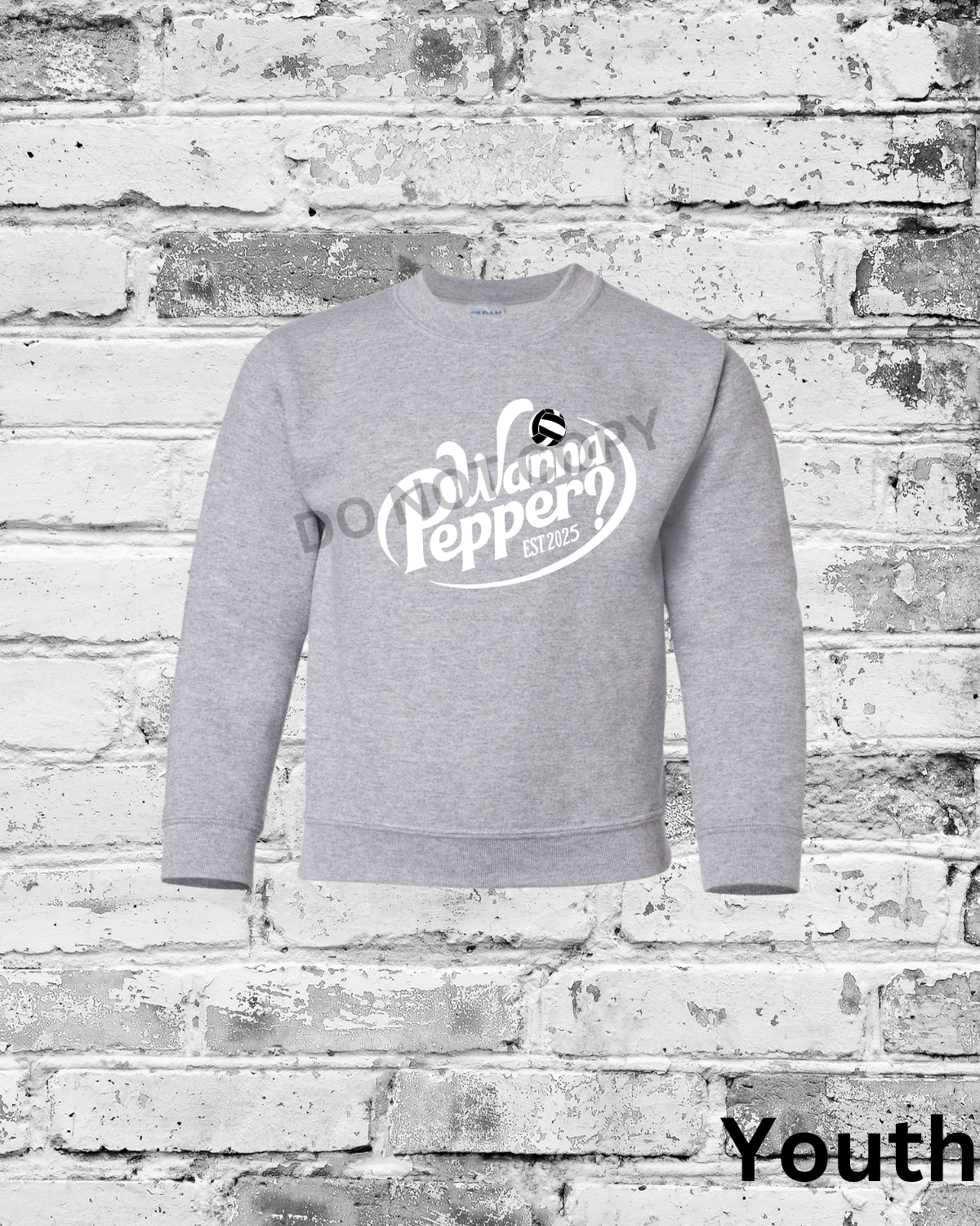 Youth Sport Grey Crewneck w/White Wanna Pepper