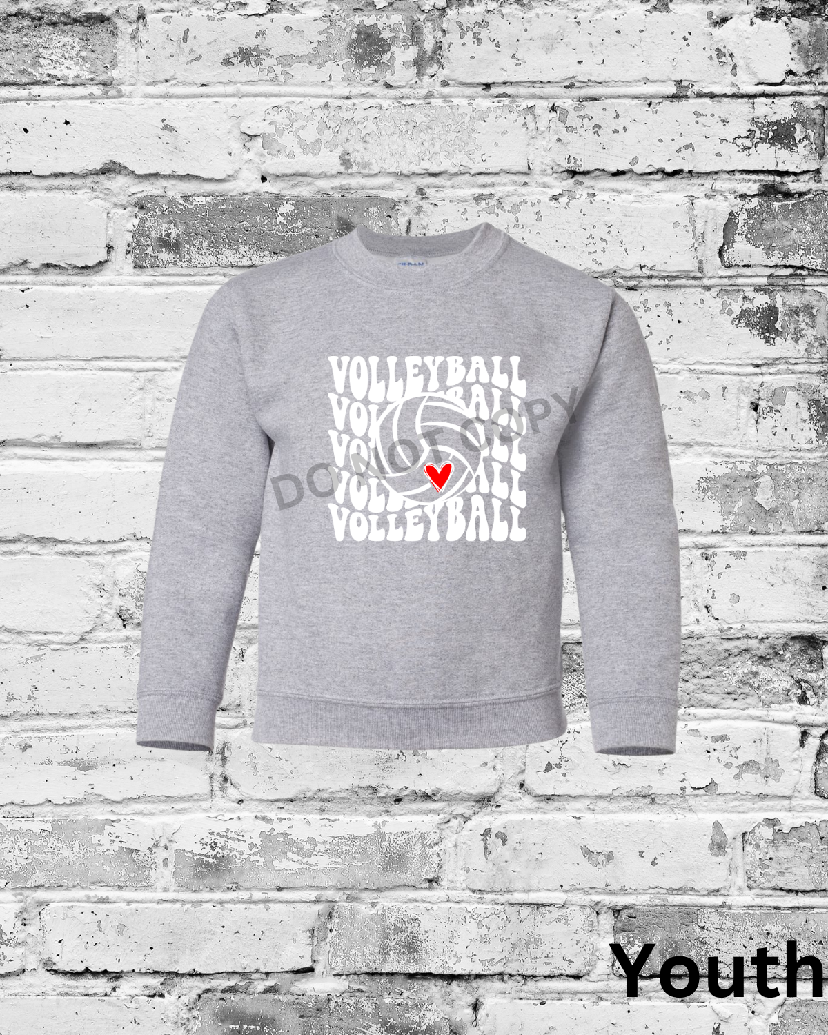 Youth Sport Grey Crewneck w/White Wave Volleyball