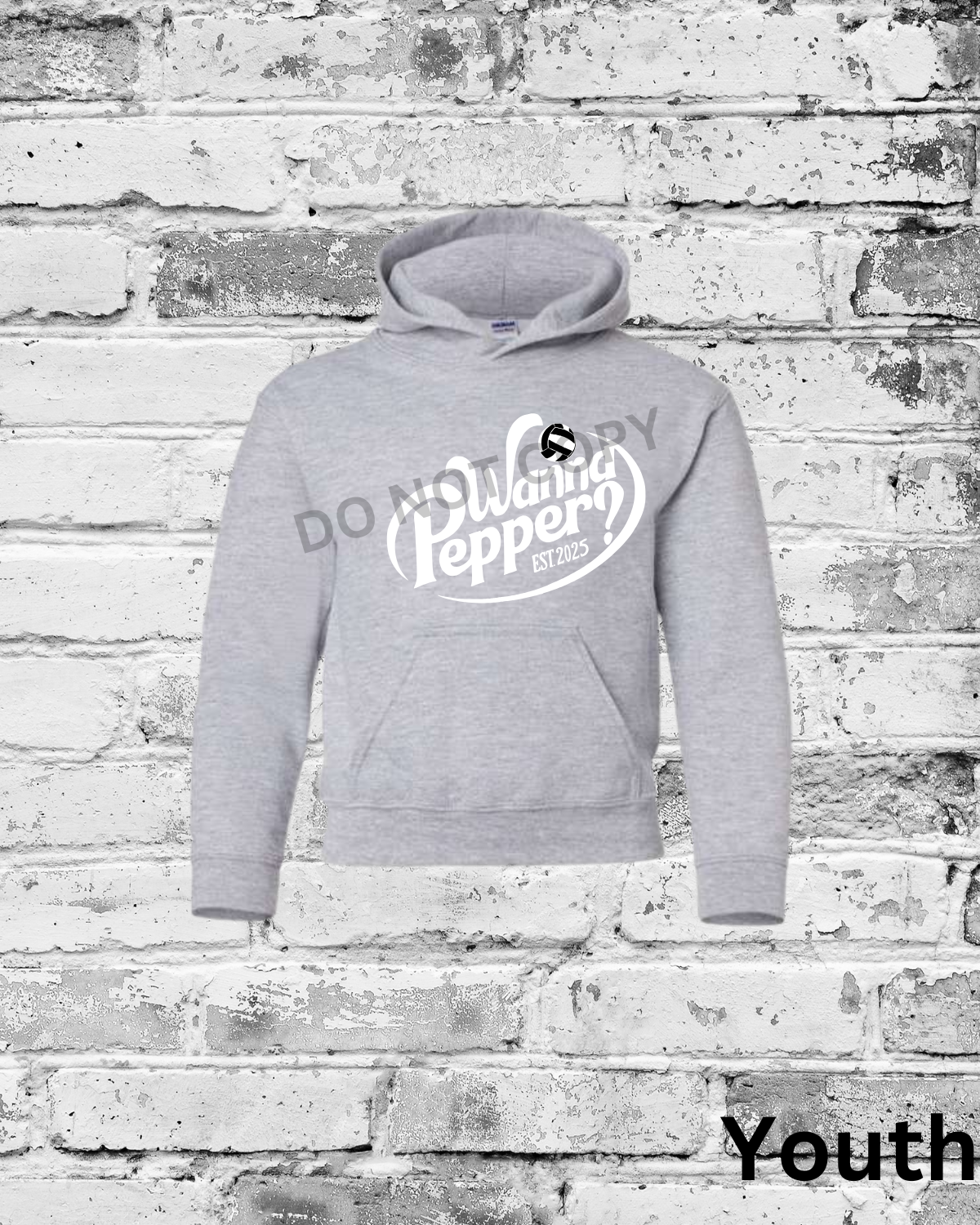 Youth Sport Grey Hoodie w/White Wanna Pepper